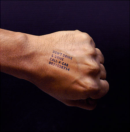 En el club nocturno Enigma, del Marriott (India), se lanzó una campaña para concientizar a sus clientes sobre los peligros de tomar alcohol y conducir. La idea propuesta fue sencilla: reemplazaron los tradicionales sellos que ponen en la mano para identificar a los clientes, y en su lugar estampaban un simple aviso: «DON´T DRINK & DRIVE CALL-A-CAB» acompañado de un número de telefono de una empresa de taxis.