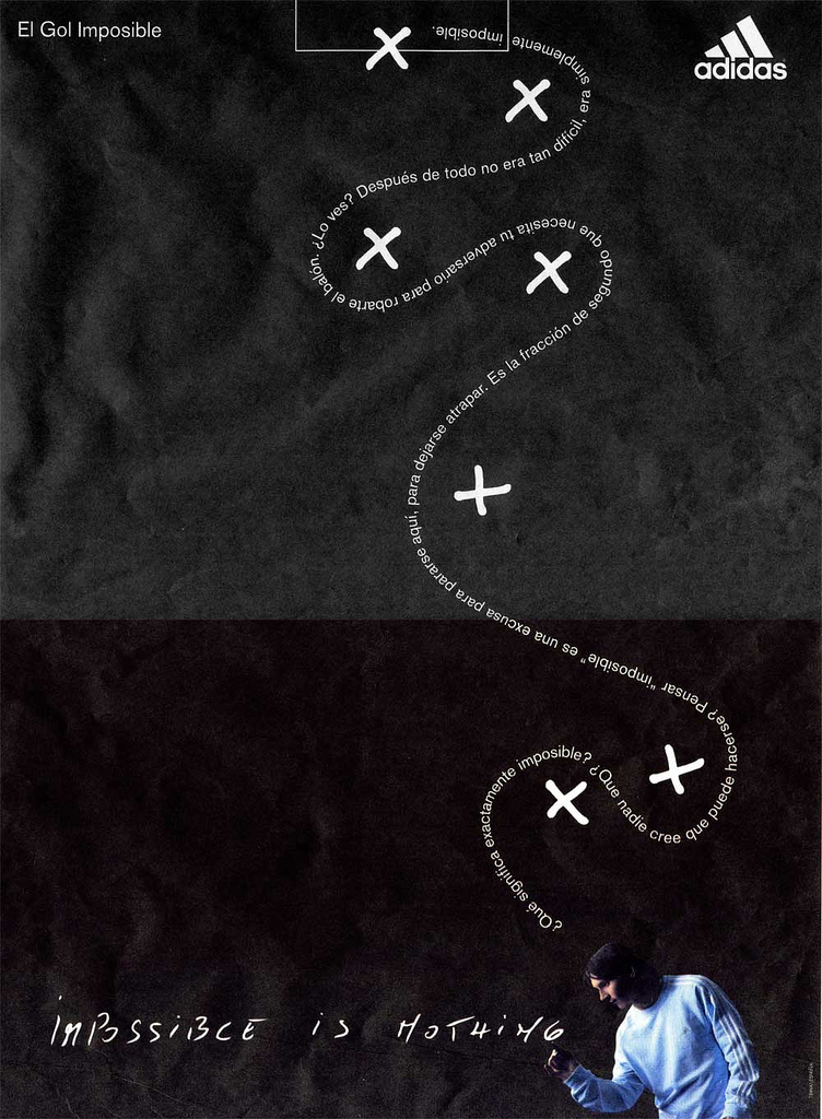 El impresionante gol de Messi causó tal sensación a nivel global, que una semana despues fue incorporado a la última campaña de Adidas bajo su ya conocido slogan «Impossible is Nothing».